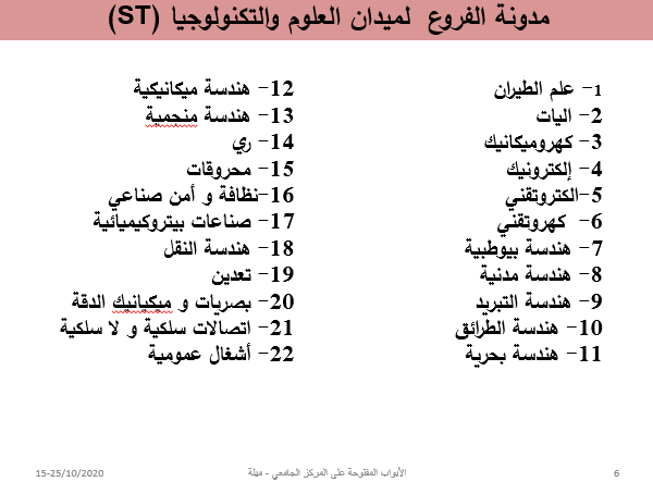 فروع ميدان العلوم والتكنولوجيا
